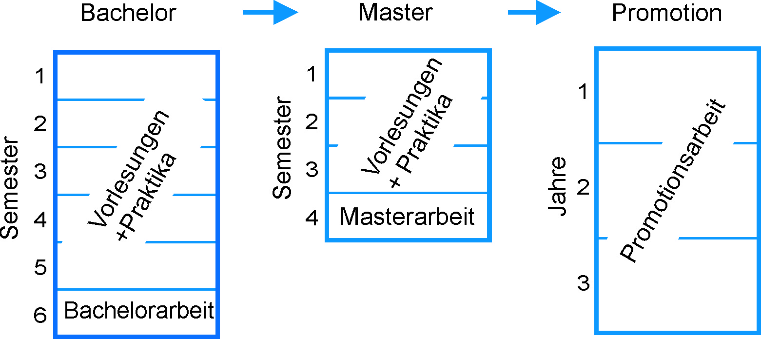 Dem Masterabschluss folgt i.A. eine ca. drei Jahre dauernde Promotion auf einem Gebiet der Materialwissenschaften. Die Professoren des Zentrums für Physik und Chemie neuer Materalien bieten im persönlichen Gespräch und auf der Webpage des Zentrums entsprechende Themen an.
